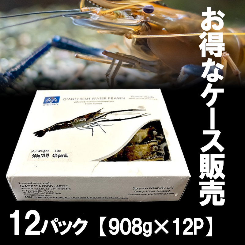 オニテナガエビ 908g×12パック 4/6サイズ Macrobrachium rosenbergii Malaysian prawn freshwater scampi